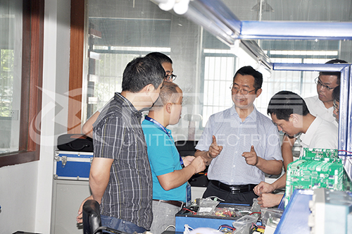 公司對(duì)黃教授的到來(lái)表示熱烈歡迎,并安排了細(xì)致的接待工作。在公司領(lǐng)導(dǎo)及各部門(mén)主要負(fù)責(zé)人的陪同下,黃教授參觀考察了公司的產(chǎn)品測(cè)試中心、技術(shù)部和生產(chǎn)車(chē)間等,并在會(huì)議室進(jìn)行了親切友好的洽談。