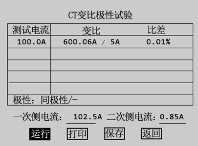 互感器綜合特性測試儀試驗結(jié)束后,屏幕顯示出變比極性試驗結(jié)果界面,如圖3.21所示。