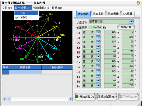 由用戶定義多個(gè)試驗(yàn)狀態(tài),可對(duì)重合閘、多次重合閘、備自投、縱聯(lián)保護(hù)等進(jìn)行測(cè)試,狀態(tài)數(shù)量可無(wú)限添加。