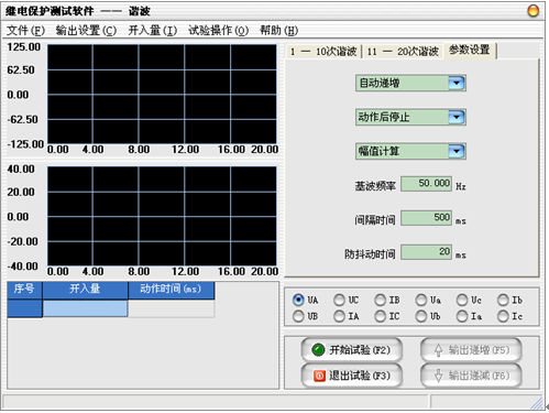 微機繼電保護測試儀幅值計算:各電壓、電流的各次諧波在界面上以“伏特”或“安培”為單位顯示其值,測試儀輸出的值為界面上實際顯示的電壓電流大小。